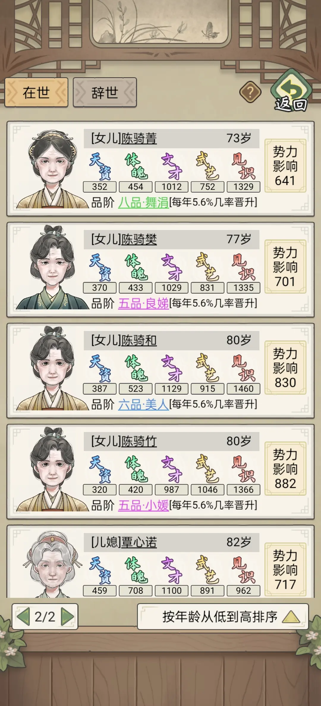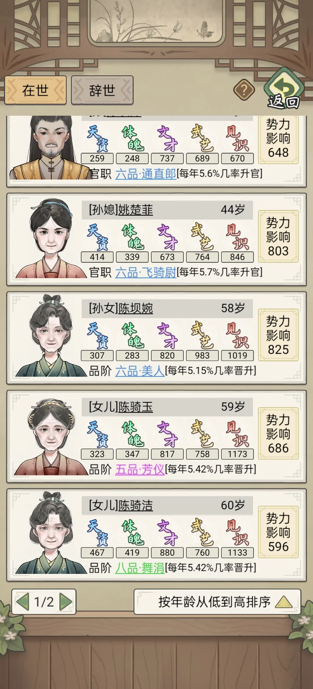 5、在游戏中,选择入仕或参军并非明智之举。这两者通常都需要大量投入,然而所能获得的收益却相对较少。一般情况下,只有老家主在世时,才能从中获取一些经济收入,一旦老家主离世,它们基本就失去了价值。