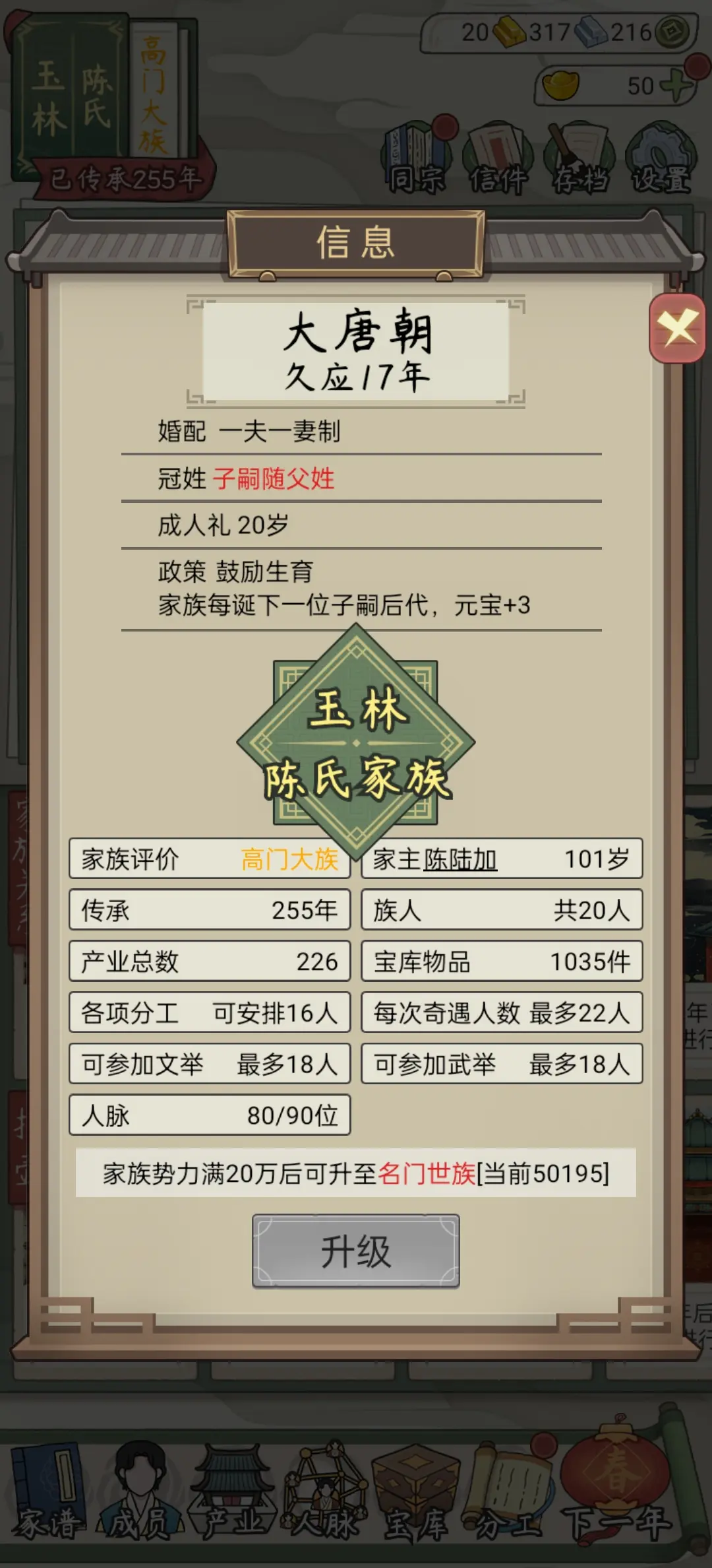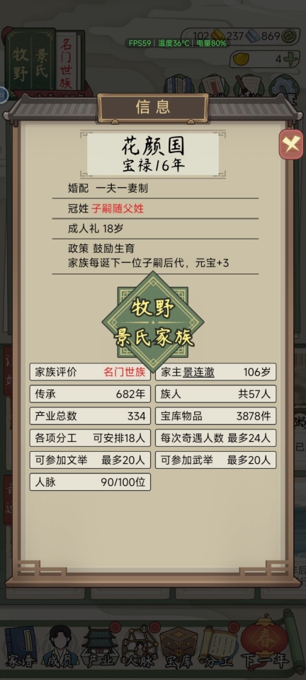 3、达成成就:通过达成特定成就,可以获得传家宝和势力提升,最多可以增加320点势力。这也有助于提升升官的机会。