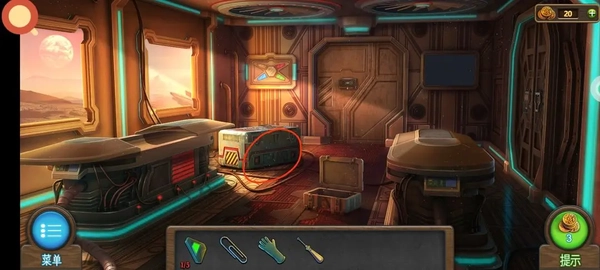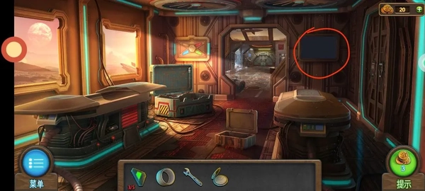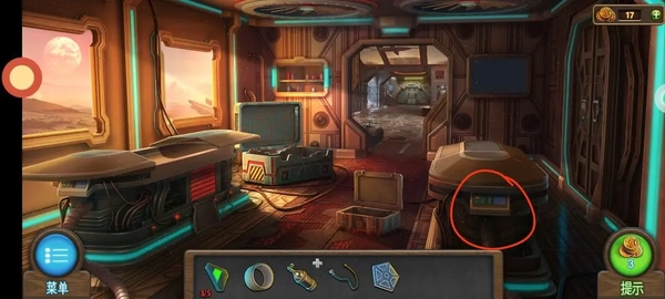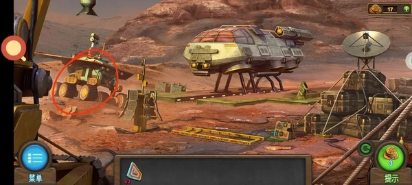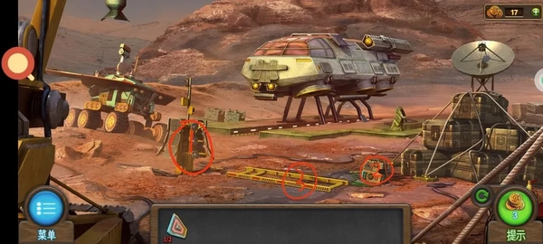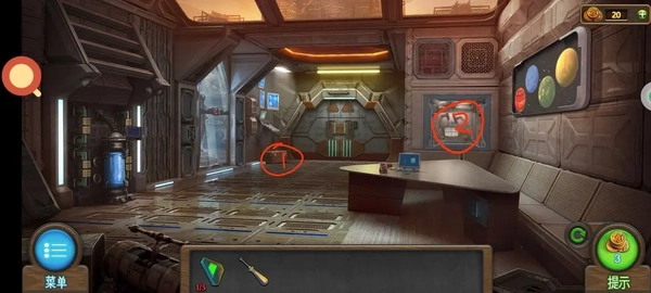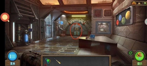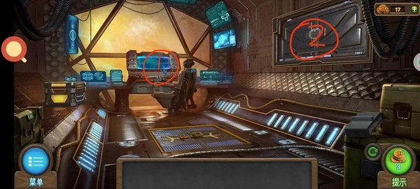 红圈处使用绿零件,完成小游戏。穿上太空服进入场景3。