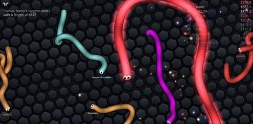 2、如果你的头碰到另一条蛇,你会爆炸游戏结束,反之,如果你在别的蛇碰上你,那么他们会爆炸,就可以吃了他们的遗体!