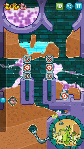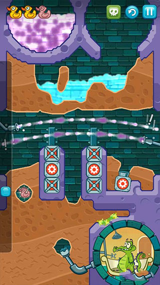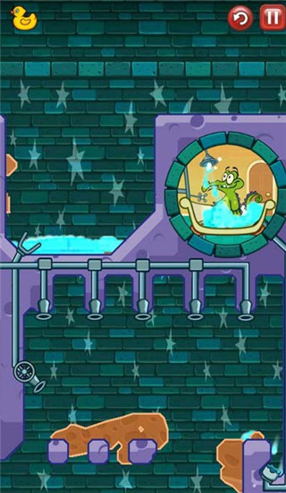5、让水成功流到小鳄鱼位置,让小鳄鱼成功洗上一个舒服的澡即可通过关卡;