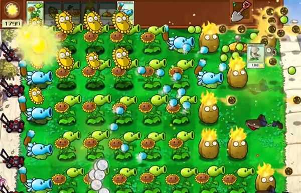 2、游戏开局时,我们要尽快建造向日葵豌豆,以此加速阳光的产出。要是有血量较高的僵尸靠近,不妨造一个免费的土豆雷来暂时应对。