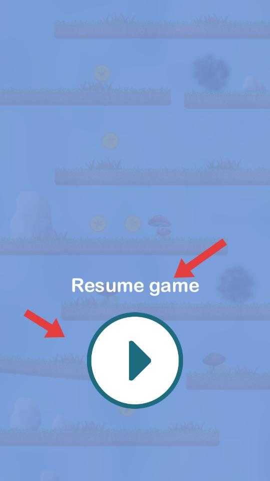 4、当需要恢复游戏时,点击带有播放箭头的按钮,选择Resume game,继续之前的游戏进程,接着收集金币,挑战关卡。