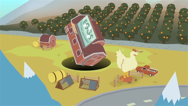 6、切换至下一场景,山上有一只体型庞大的鸟。遵循同样的步骤,先点燃烟花,接着吞噬烟花,随后将地洞移动到山下黑色影子所在之处。再次点燃烟花,对大鸟进行轰炸。此步骤需重复2至3次。