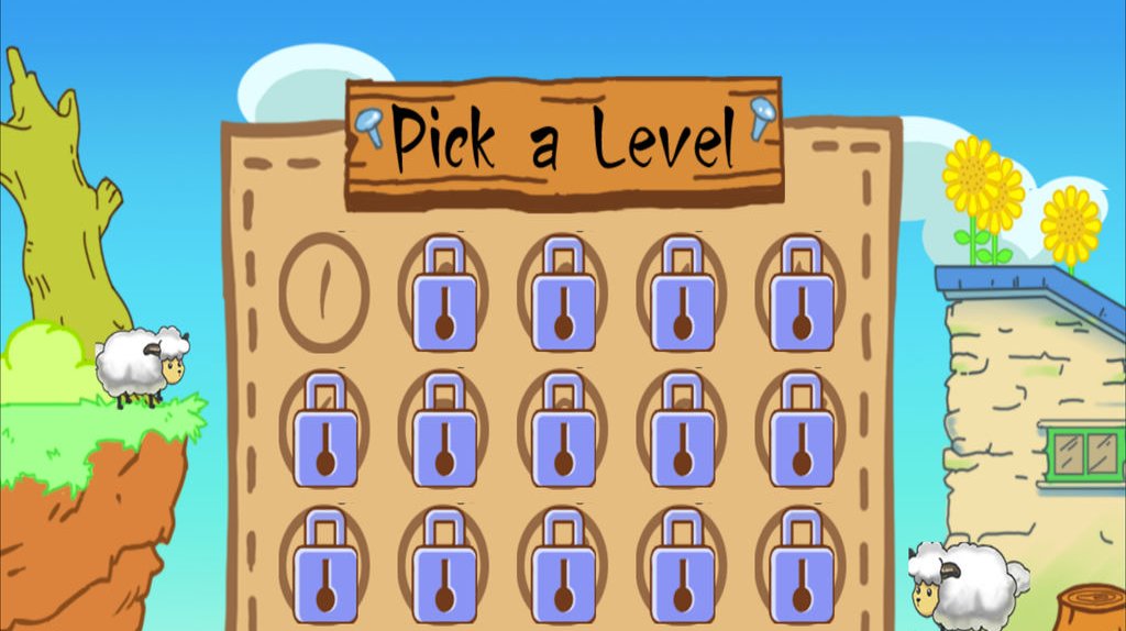 1、游戏画面里,天空一片湛蓝,卡通造型的小羊可爱至极。当它们遭遇危险时,不停地咩咩叫,满脸恐惧。快来帮帮它们吧!