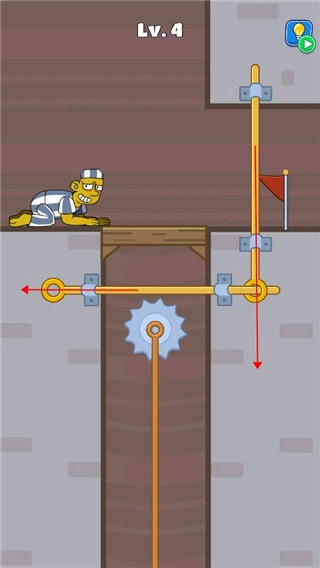 3、来到第四关,首先将横杆朝着左边拉动,接着把另一个横杆往下方拉动。在此过程中,务必留意速度,否则很有可能会陷入陷阱之中。